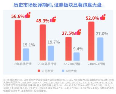 券商板块具备较强β属性,主营业务表现与资本市场表现息息相关,也正因为如此,证券板块被喻为“牛市旗手”。历史市场反弹期间,证券板块显著跑赢大盘。