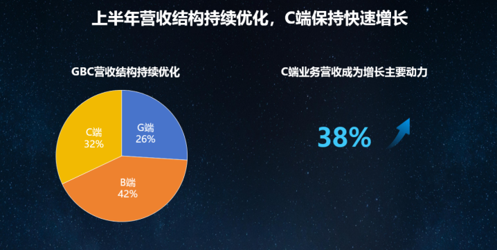 面对G端业务的压力,科大讯飞进行战略调整,对于部分G端的数字政府类的项目采取了更审慎的经营策略,且将重心向C端转移。据江涛在业绩说明会上的介绍,在G端、B端和C端的“三驾马车”中,C端业务占比提升最快,上半年同比增幅达到38%,且收入回款率较高。其中,AI学习机上半年收入同比翻番。与此同时,B端与G端业务也有所改善。