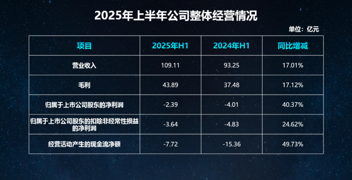 近日,科大讯飞发布2025年中期报告,公司上半年营收首次突破百亿,达109.11亿元,同比增长17.01%。同时,上半年销售回款首次突破百亿,达103.61亿元,同比增加13.50亿元。毛利43.89亿元,同比增长17.12%;归母净利润-2.39亿元,亏损同比收窄40.37%,经营活动现金流量净额增长超过7.64亿元,同比提升49.73%,展现积极发展势头。